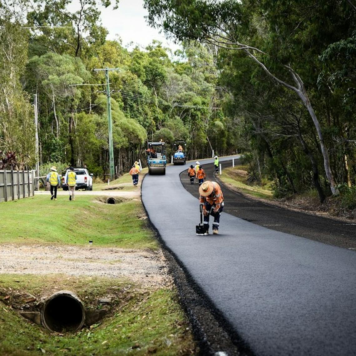 Image of new roads paved with road base containing tyres in Logan city Council. Image credit: Tyre Stewardship Australia.
